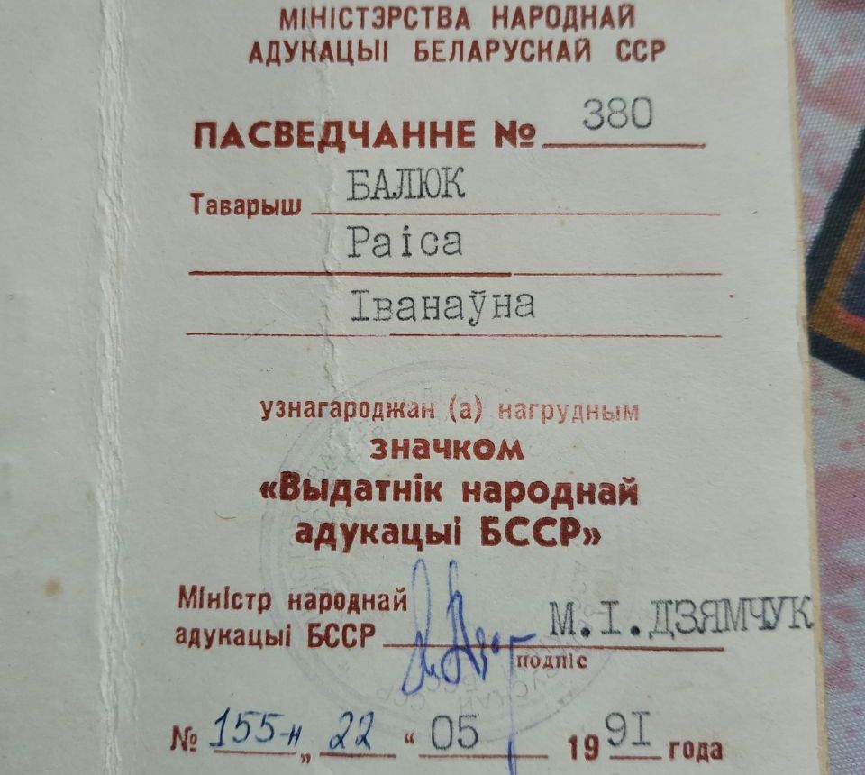 Удзячна і людзям, з якімі працую побач зараз. Па вялікім рахунку, я была толькі ў двух калектывах: Мядзельскай сярэдняй школы (потым яна стала школай №1) і гімназіі. Толькі добрае магу сказаць пра абодва калектывы, пра адміністрацыі абедзвюх устаноў. Вось і зараз дырэктар гімназіі Ірына Іосіфаўна Азарка бачыць перспектывы развіцця, хвалюецца за кожнага вучня і педагога. Стварае ўмовы, у якіх усім камфортна. І такое стаўленне адміністрацыі я адчувала на працягу ўсёй педагагічнай дзейнасці – а працую ўжо 57-мы год. У калектыве шмат аднадумцаў. Узяць хоць бы матэматыкаў гімназіі Таццяну Васільеўну Казельскую і Алену Віктараўну Самуленкаву, маю былую вучаніцу, а зараз калегу Наталлю Арцёмаўну Клунік… І да кожнага ў нашым педкалектыве можна звярнуцца і атрымаць падтрымку.