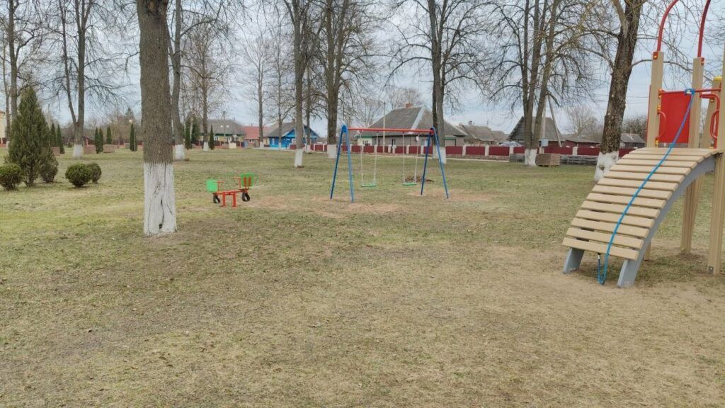 Установило площадку Мядельское ЖКХ – работы проведены как часть благоустройства агрогородка. Стоит напомнить, расположенный в Будславе Костел Успения Пресвятой Девы Марии выбран Римско-католической церковью в Беларуси в качестве духовного центра католиков.