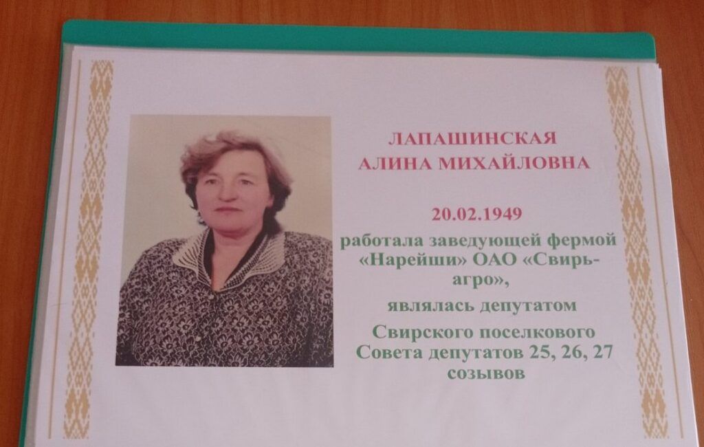 С фотографий смотрят женщины, ныне живущие и когда-то жившие на территории Свирского сельсовета. Это ветераны Великой Отечественной войны Галина Печкурова, Лидия Матесович и Тамара Илюк, заслуженная учительница БССР Татьяна Балаш, старейшина деревни Лилия Мицкун, бывшие председатель поселкового исполкома Евгения Вайгяница и депутат поселкового Совета трех созывов Алина Лапашинская. А еще – награжденные орденами доярки Зофия Козел, Мария Рожкова, Мария Кимбор, Елена-Бронислава Бабич, Мария Павлович, Валентина Ескевич и учительница Надежда Качанович… Сейчас в альбоме 27 фотографий.
