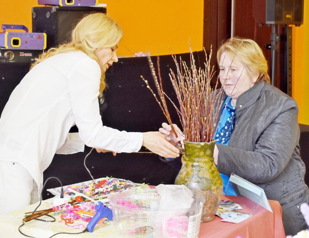 В Мядельском районном Центре культуры проходит ярмарка “Вербны кірмаш”. Можно купить украшенную вербочку, пасхальные сувениры и другие изделия от народных умельцев, причем не только мядельских.