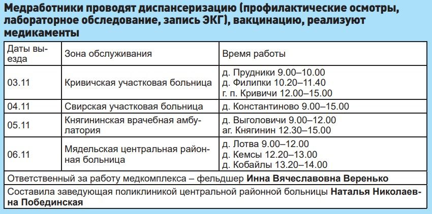 Кривичи, Княгинин, Лотва… Рассказываем, где ещё на этой неделе будет работать передвижной медицинский комплекс Мядельской ЦРБ