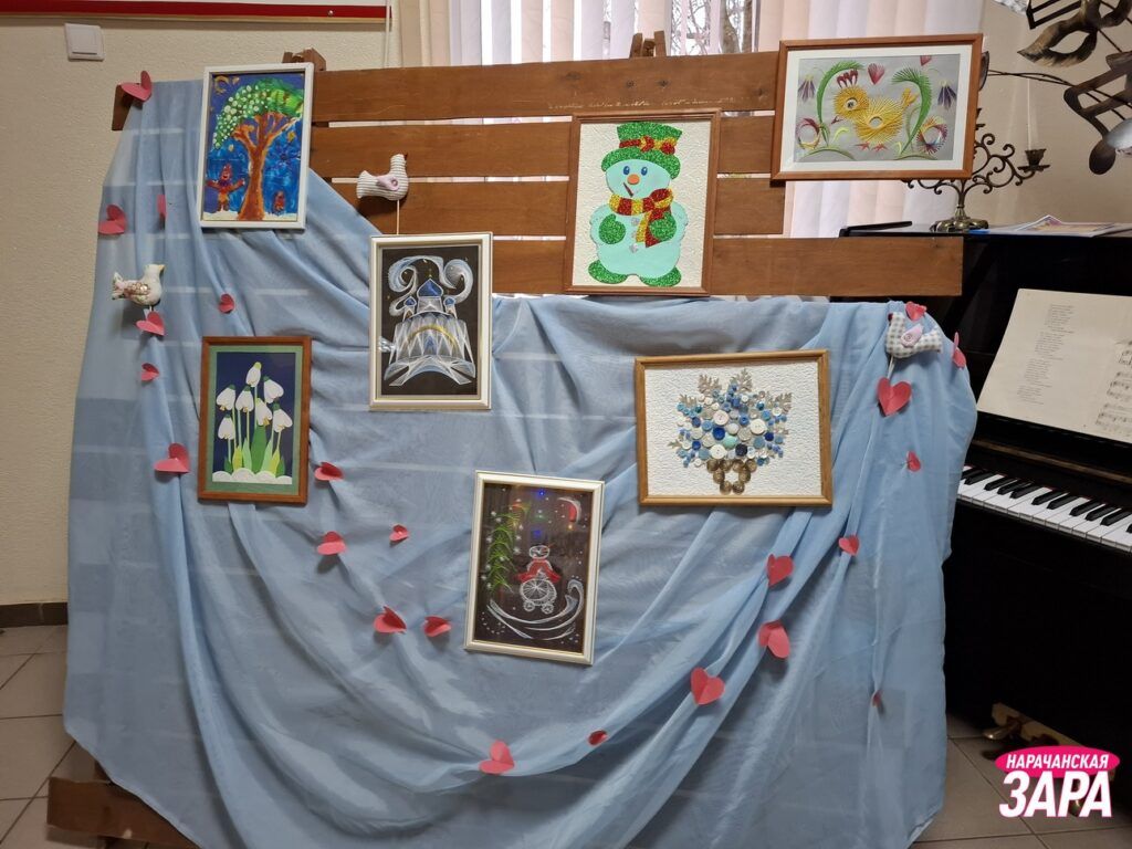 В фойе учреждения культуры можно было познакомиться с работами, созданными посетителями Мядельского ТЦСОН и воспитанниками Центра коррекционно-развивающего обучения и реабилитации Мядельского района, несущими лучик света, добра и позитива.