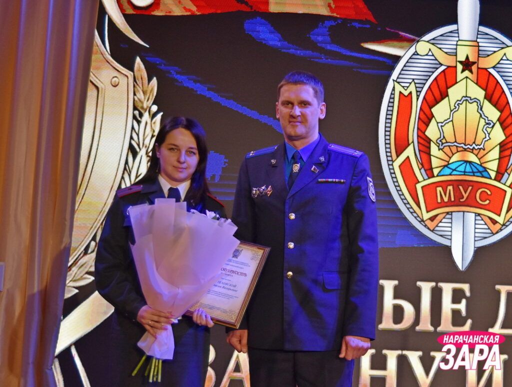 Указом Президента 2026 год объявлен Годом белорусской женщины. В связи с этим особое внимание на торжестве уделили сотрудницам Мядельского РОВД. Ведущие отметили, что современная женщина в погонах успешно сочетает суровую мужскую профессию с заботой о семье и воспитанием детей. Теплые слова в адрес коллег произнесла заместитель начальника РОВД Ольга Храпан.