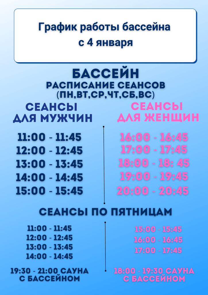 График работы бассейна по пятницам