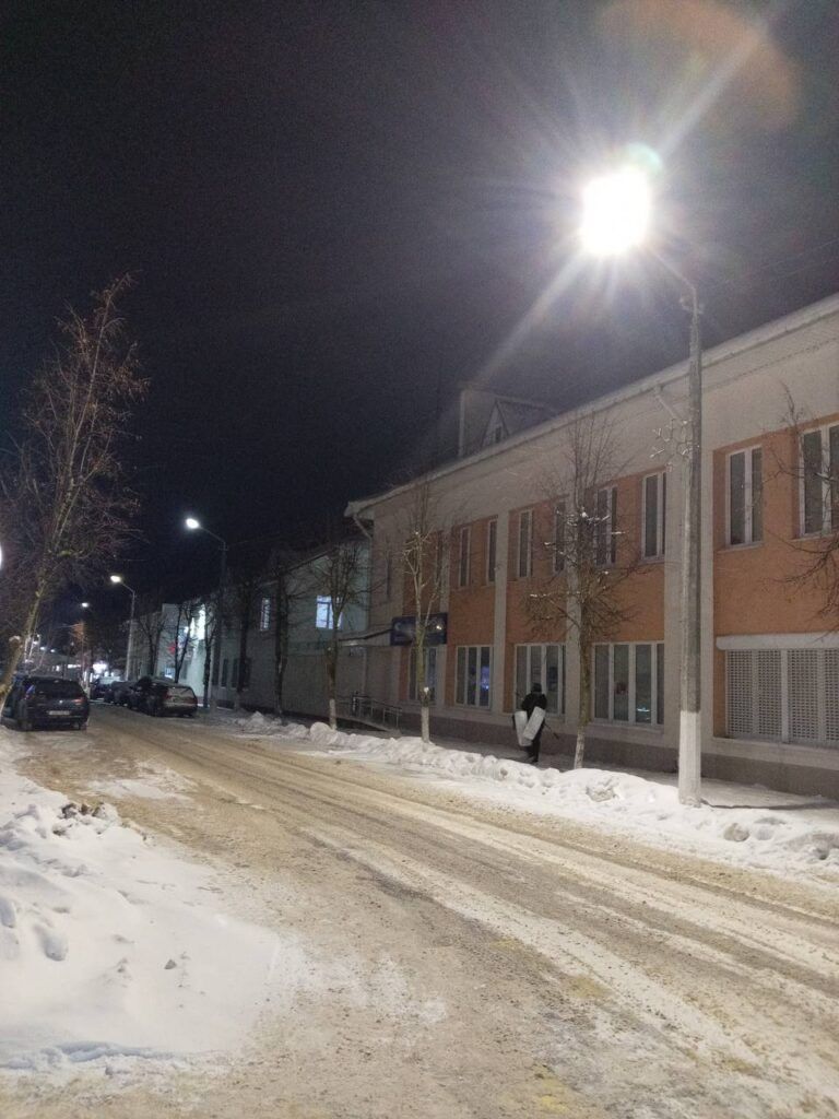 Вечер 5 февраля, Мядель. Пока естественного освещения было достаточно для безопасного передвижения, искусственное не задействовали. Во время массового возвращения людей с работы фонари ещё не горели, но реальной необходимости в них и не было. Включились, когда на город стали опускаться сумерки.