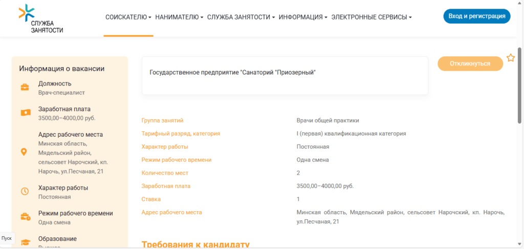 На сей раз приглашают врача-гинеколога-акушера в санаторий «Белая Русь». Специалисту готовы платить приличные 2500–3500 рублей. Само собой, основным требованием к кандидату является наличие профильного высшего образования. Должность-то ответственная.