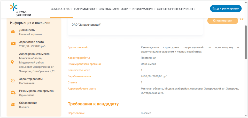 Крупное сельхозпредприятие Мядельского района ОАО «Занарочанский» нуждается в агрономе с высшим образованием, которому готовы платить приятную и стабильную зарплату в размере 2600–2900 рублей. Во всяком случае, такие деньги обещаются в объявлении. Любопытно, что в требованиях к кандидату отмечено хорошее знание русского языка. Разумеется, агроному важно не только умело руководить посадкой и сбором урожая, но и грамотно общаться с людьми.