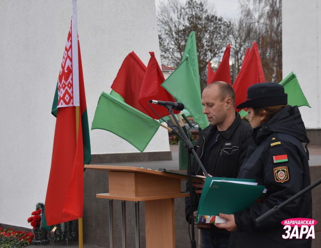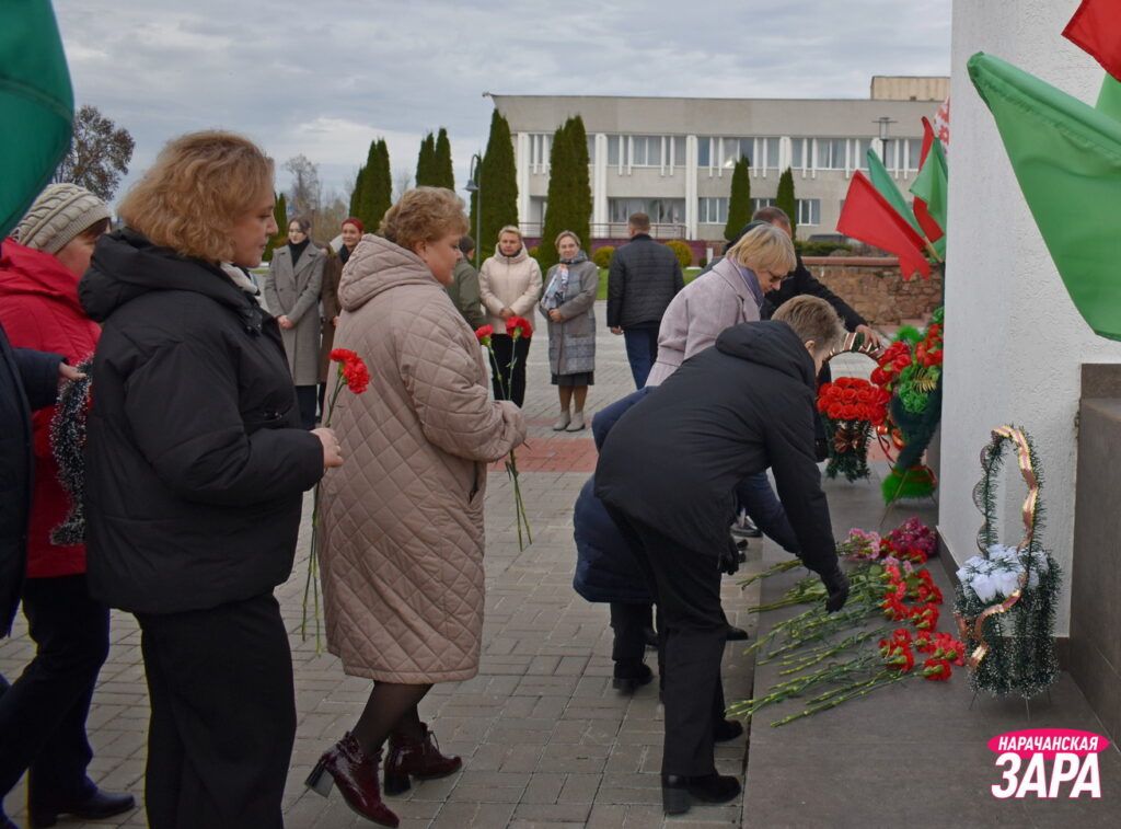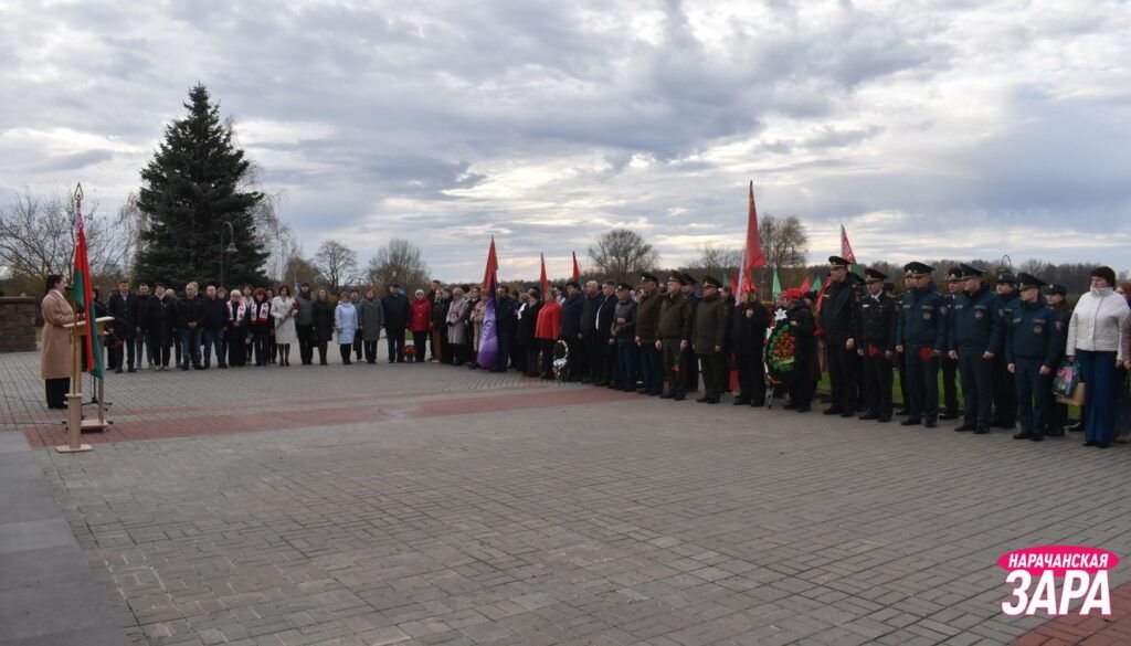 Накануне праздничной даты на площади Ленина в Мяделе прошел митинг, посвященный 108-й годовщине Великого Октября. Собрались на него представители трудовых коллективов, общественных организаций.