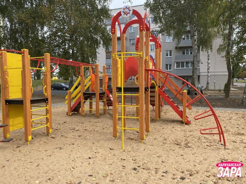 Изменился и двор. Светлое и аккуратное здание дополняет заасфальтированная территория в обрамлении новых бортовых камней, новый пестрый детский игровой комплекс, современная контейнерная площадка, молоденькие туи, ели и лиственные деревья.