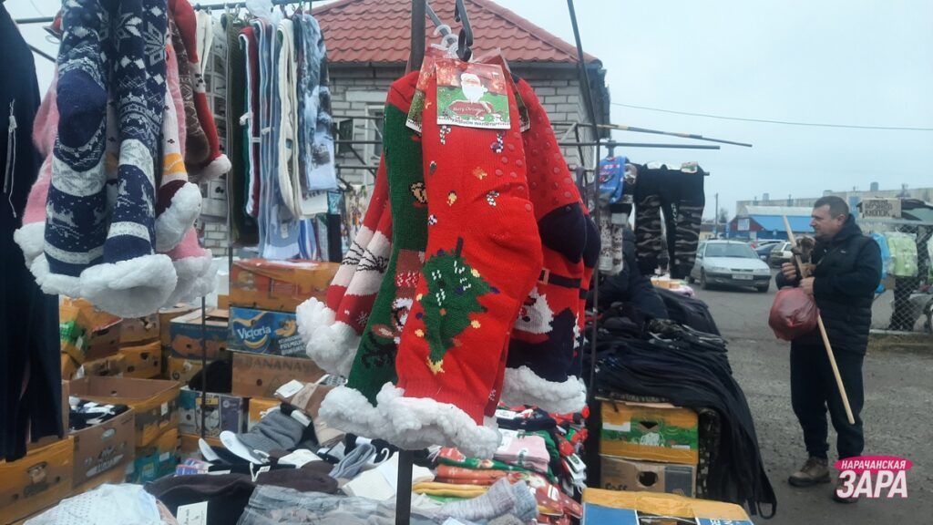 – Мы качественными товарами торгуем, – заверяет с ходу мужчина. – Везем с Москвы. Продаю вместе с женой. Нас здесь все уже знают. Считай, как местные. Супруга сама с Мяделя. Новогодние носочки берут как взрослые, так и помоложе люди. Прихватнички, посмотрите, какие у нас симпатичные — с рисунком Деда Мороза или елочки. Рождественские носки-тапочки пользуются популярностью у народа — по 10 рублей за пару. Нашим ценам тут минчане удивляются, скупают все и говорят: «Как вы продаете носки по 3 рубля? У нас намного дороже».