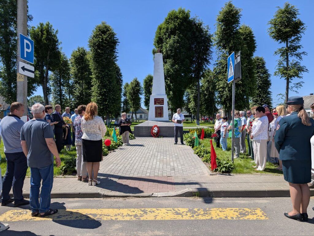Остановитесь у скромного памятника. В этом месте 28 апреля 1942 года фашисты и их приспешники сожгли заживо и убили 350 евреев.