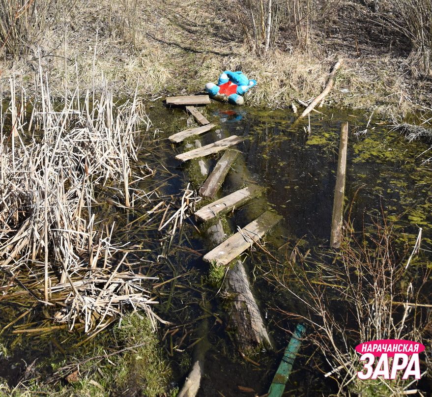 Показал собеседник подходы к берегу в других местах – дальше от центра агрогородка. В одном – люди сколотили крепкий на вид мостик, в другом – трухлявое бревно лежит, так что пробраться дальше сложно.