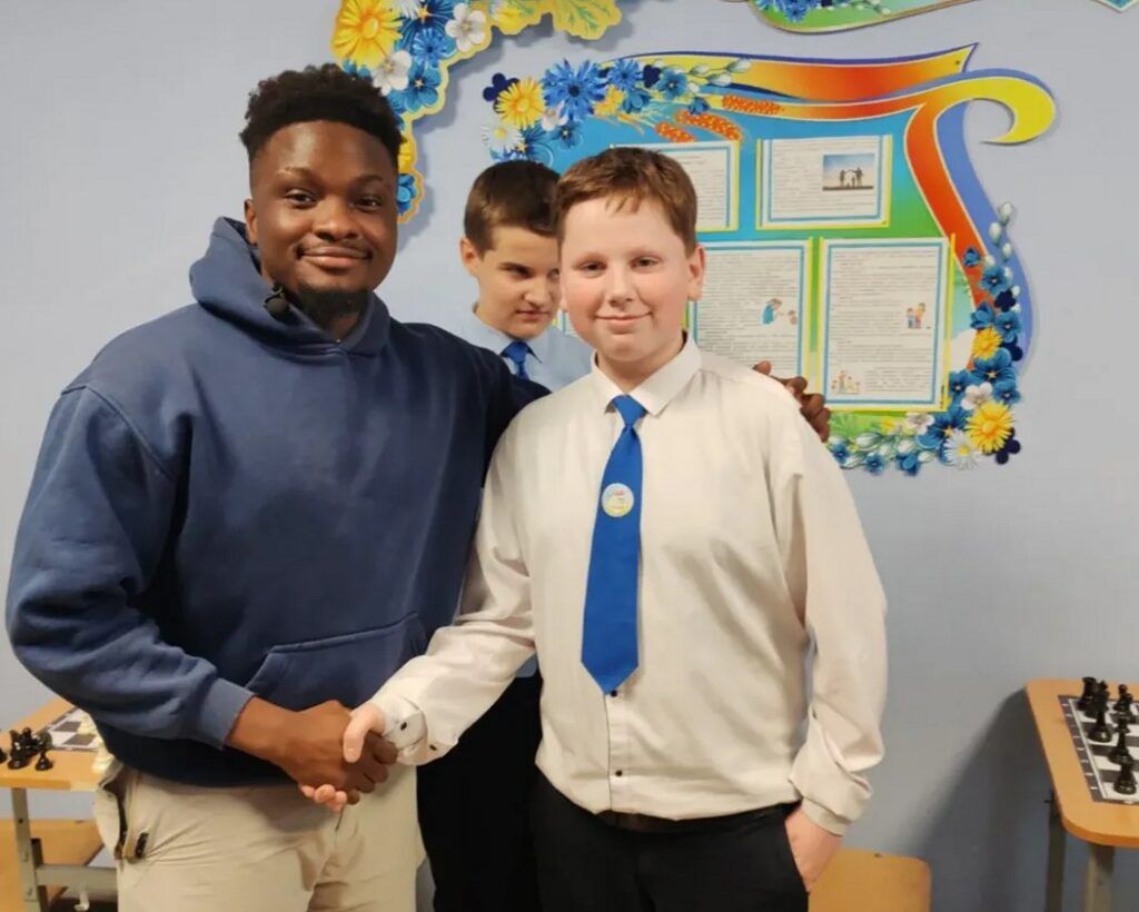 – Ведущий Стивен родом из Камеруна, и на уроке географии в 7-м классе он с удовольствием показал на карте свою страну и немного рассказал о ней, — сообщила директор школы Ольга Лосик. – Стивен похвалил наши зоны отдыха для ребят. А ещё выяснилось, что наш гость – большой поклонник шахмат! Партии с учениками получились азартными.