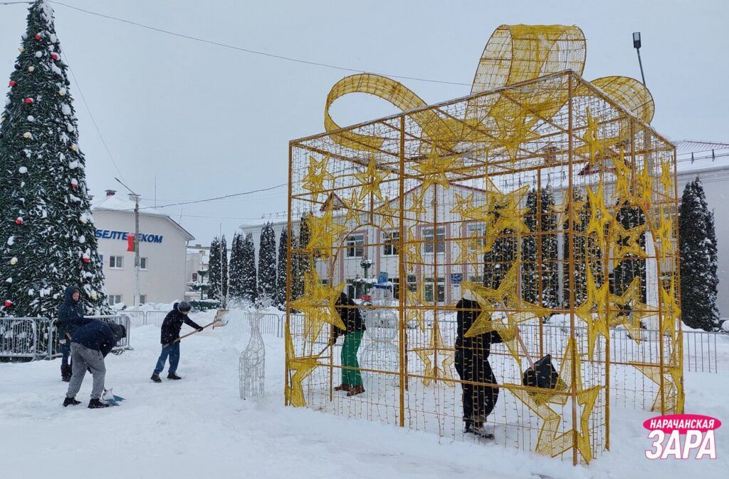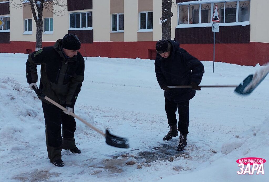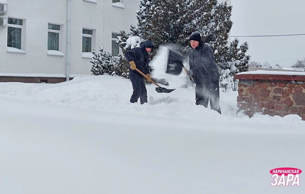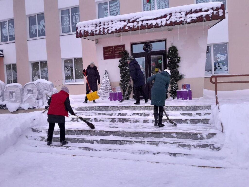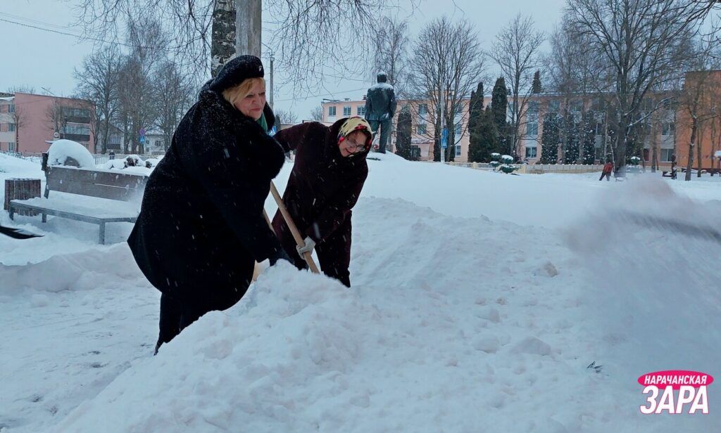 Возле редакции районной газеты и Белагропромбанка убирают снег депутаты районного Совета депутатов, представители райисполкома, района электрических сетей, райтопа.