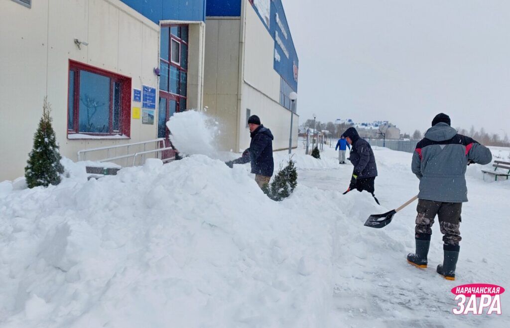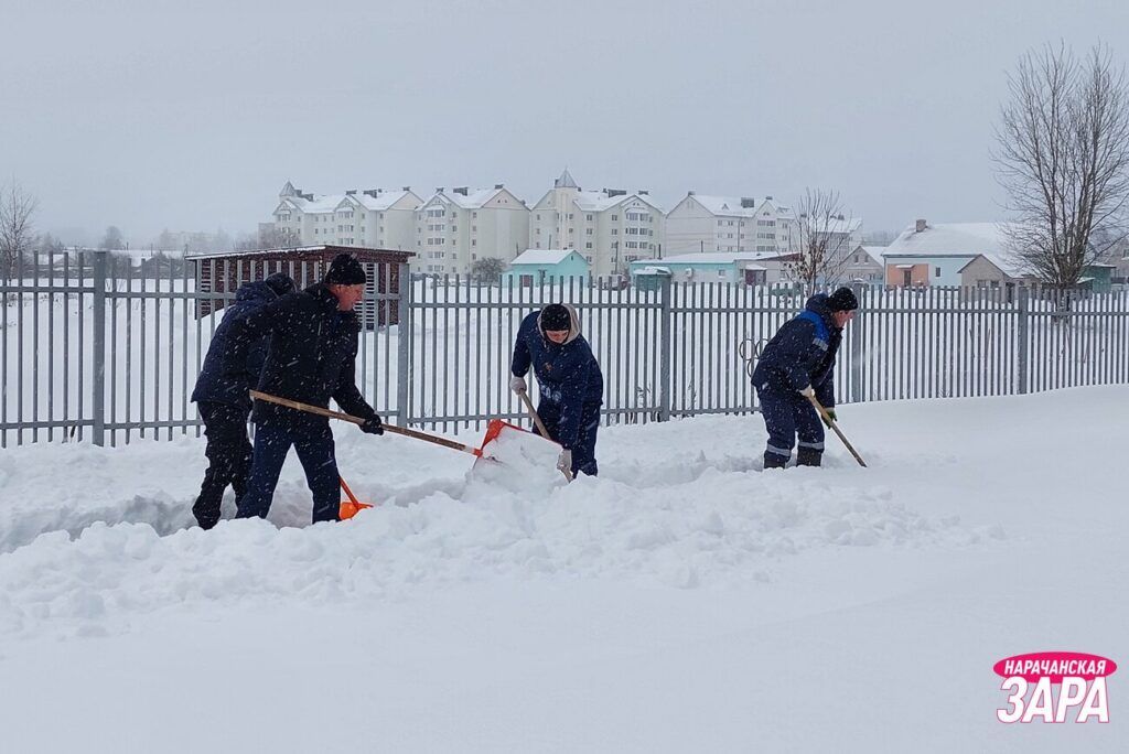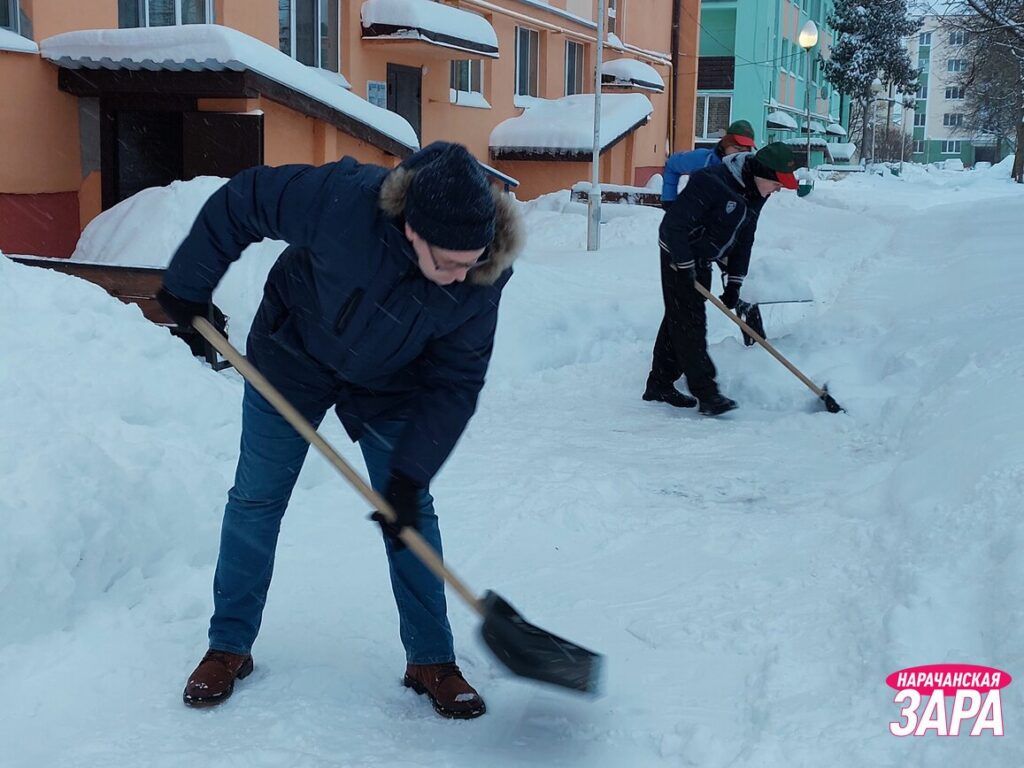 В Мядельском районе сегодня помочь работникам ЖКХ убирать снег массово вышли жители, молодежь, представители депутатского корпуса и общественных организаций, силовых структур, образования, предприятий и организаций.
