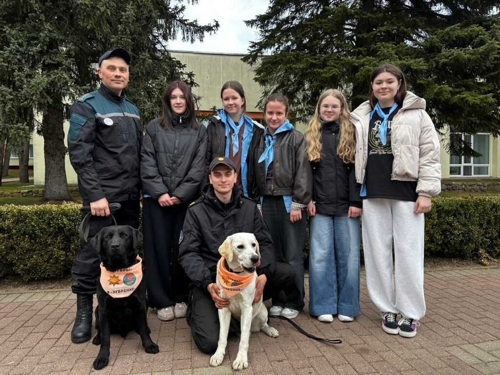 В «Зубренке» побывали представители кинологической службы Республиканского отряда специального назначения «ЗУБР» МЧС Беларуси. В гости к детям приехали кинологи и их напарники – лабрадоры Дарк и Раф.
