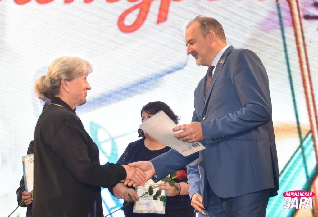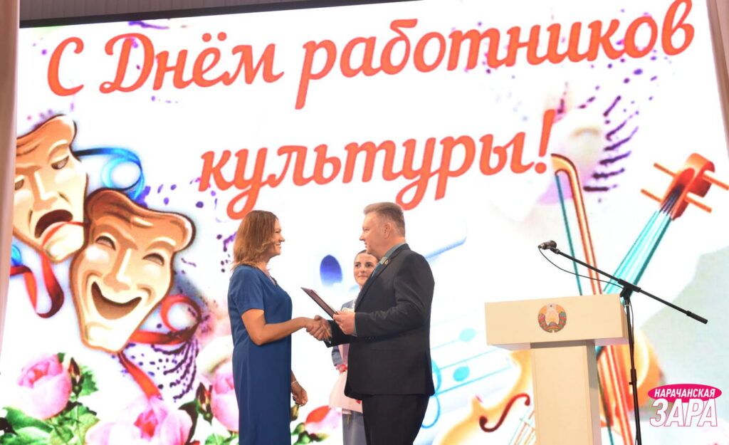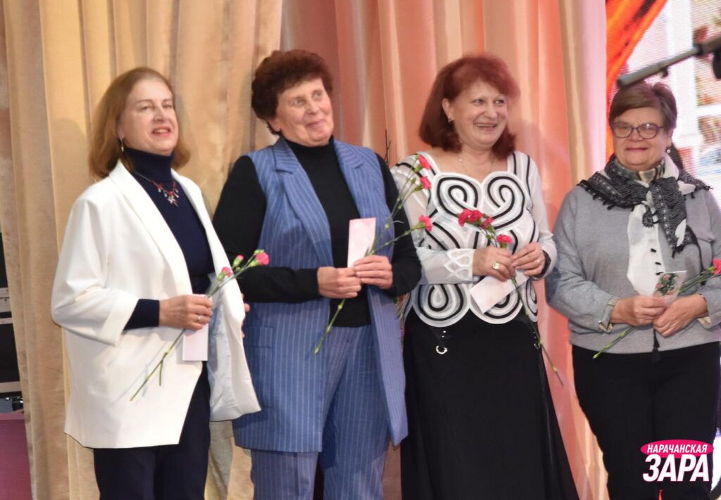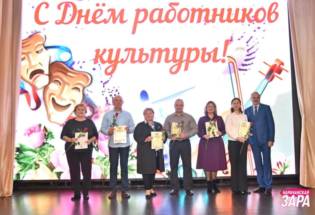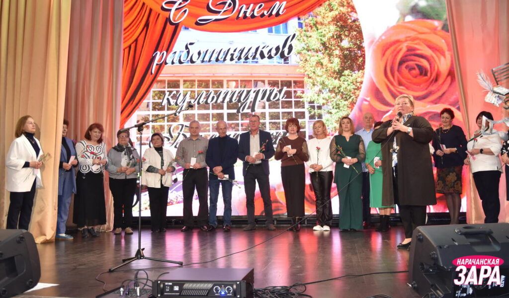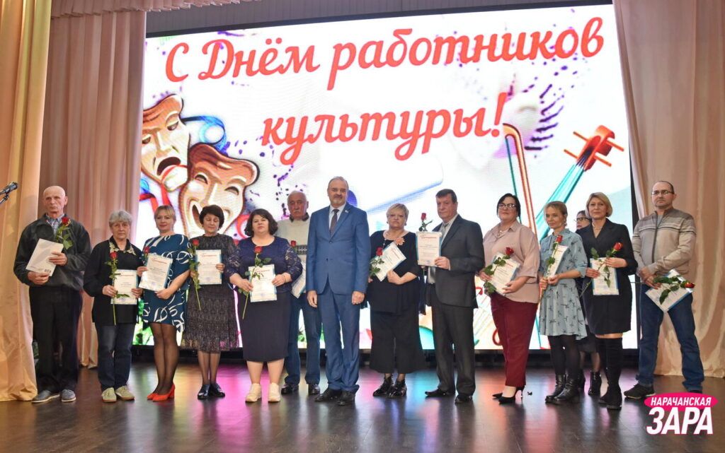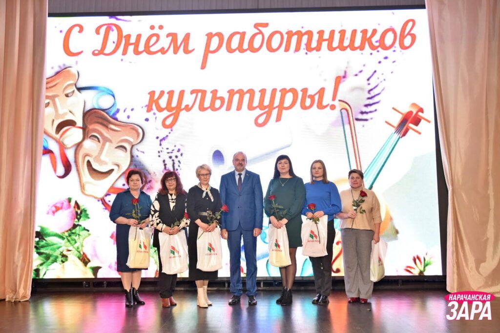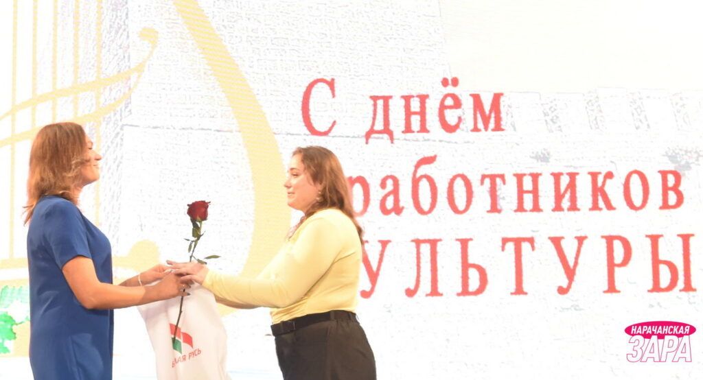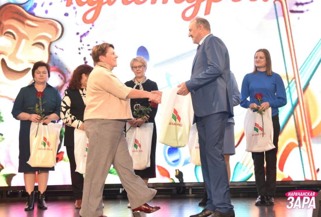 На сцэну запрасілі юбіляраў сферы культуры — тых, хто адпрацаваў у галіне ад 20 да 50 гадоў. Так, палова стагоддзя ў прафесіі — бібліятэкар Будаслаўскай сельскай інтэграванай бібліятэкі Галіна Аксючыц і настаўніца па класе фартэпіяна Мядзельскай дзіцячай школы мастацтваў Таццяна Будкевіч.