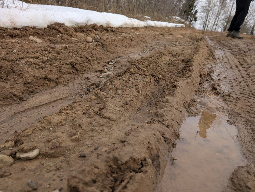 Сергей отмечает, что основная нагрузка на проблемный участок ложится в период полевых работ, когда по нему начинает движение сельскохозяйственная техника. После проезда тракторов ситуация только усугубляется.