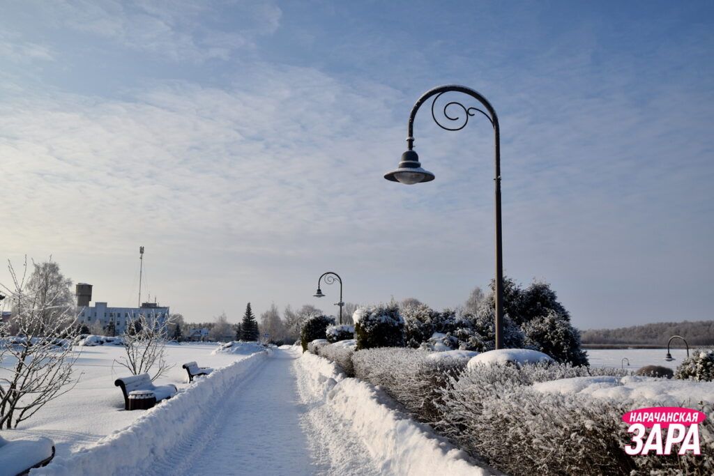 Мядель сегодня словно погрузился в волшебную зимнюю сказку. Морозный день выдался на редкость ясным: пронзительно голубое небо раскинулось над заснеженным городом.