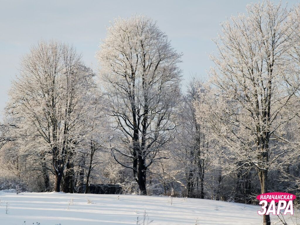 Деревья стоят, как сказочные великаны, укутанные в серебристый иней, а ветки сверкают на солнце, будто осыпанные алмазной крошкой.