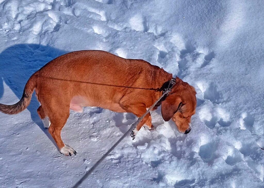 - Скользкая поверхность – лёд и утрамбованный снег лишают собаку устойчивости.