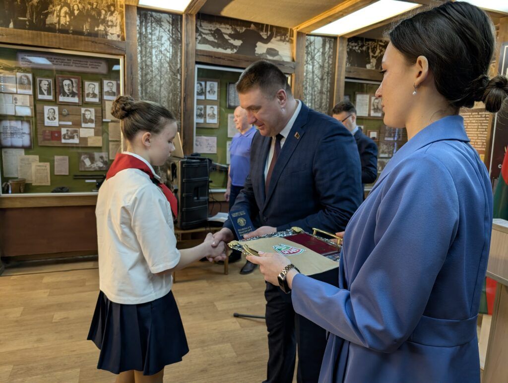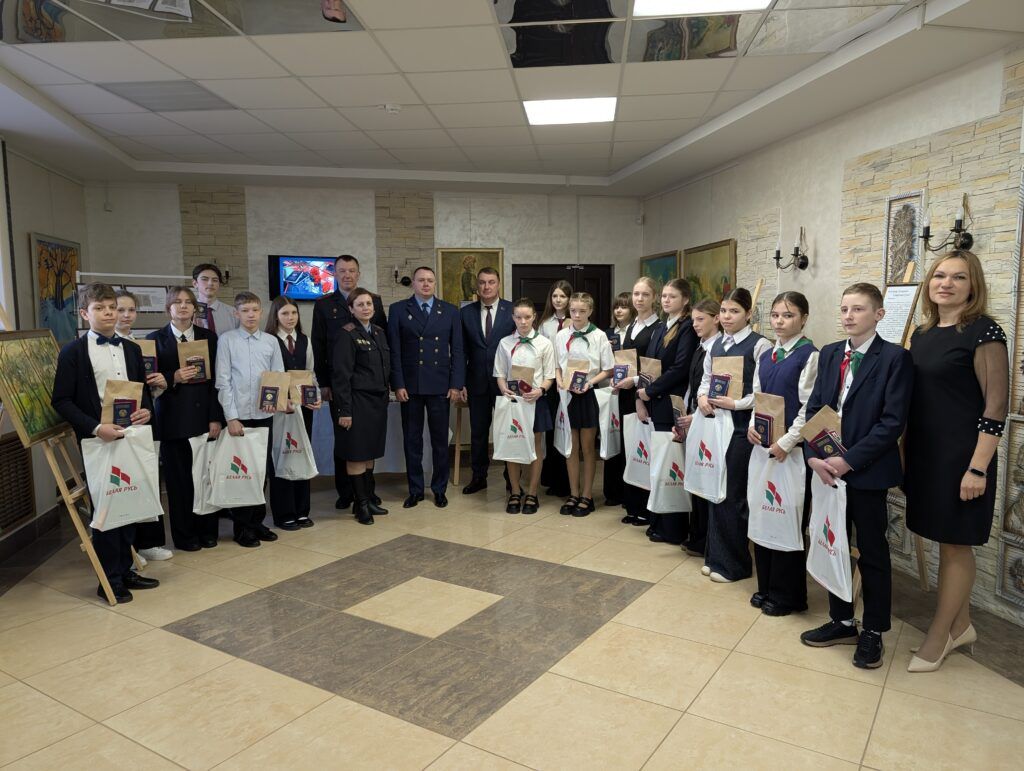 Завершилось мероприятие музыкальным выступлением Веры Лагутко с песней «Беларусь, ты моя». Для новых граждан провели экскурсию по экспозиции Музея народной славы. Председатель районного общественного объединения «Белая Русь» Екатерина Климович вручила школьникам памятные подарки от организации.