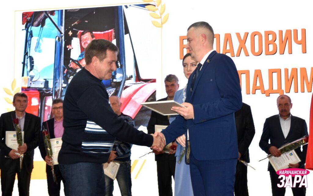 Наступным віншаваў аграрыяў першы намеснік старшыні райвыканкама-начальнік упраўлення па сельскай гаспадарцы і харчаванні Андрэй Марозаў. Ён узнагародзіў тых, хто вызначыўся на пасяўной, корманарыхтоўцы і жніве, у жывёлагадоўлі. Усяго ўручыў 60 дыпломаў. Ну а сёлетнім маладым спецыялістам (а гэта дзевяць дзяўчат і адзін хлопец) былі падарункі. Уручылі іх і ветэранам галіны.