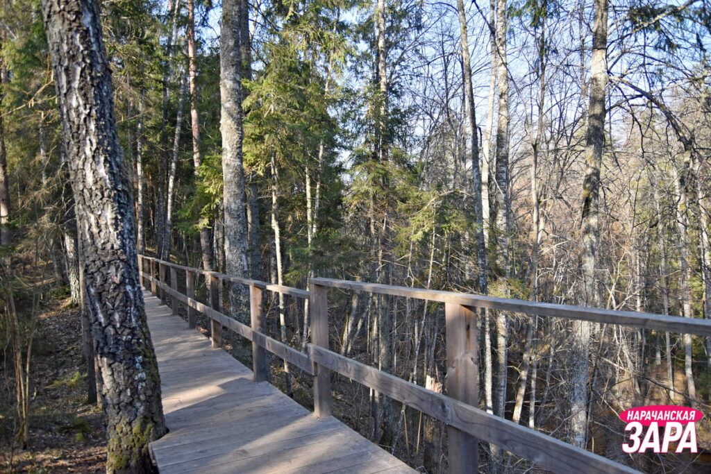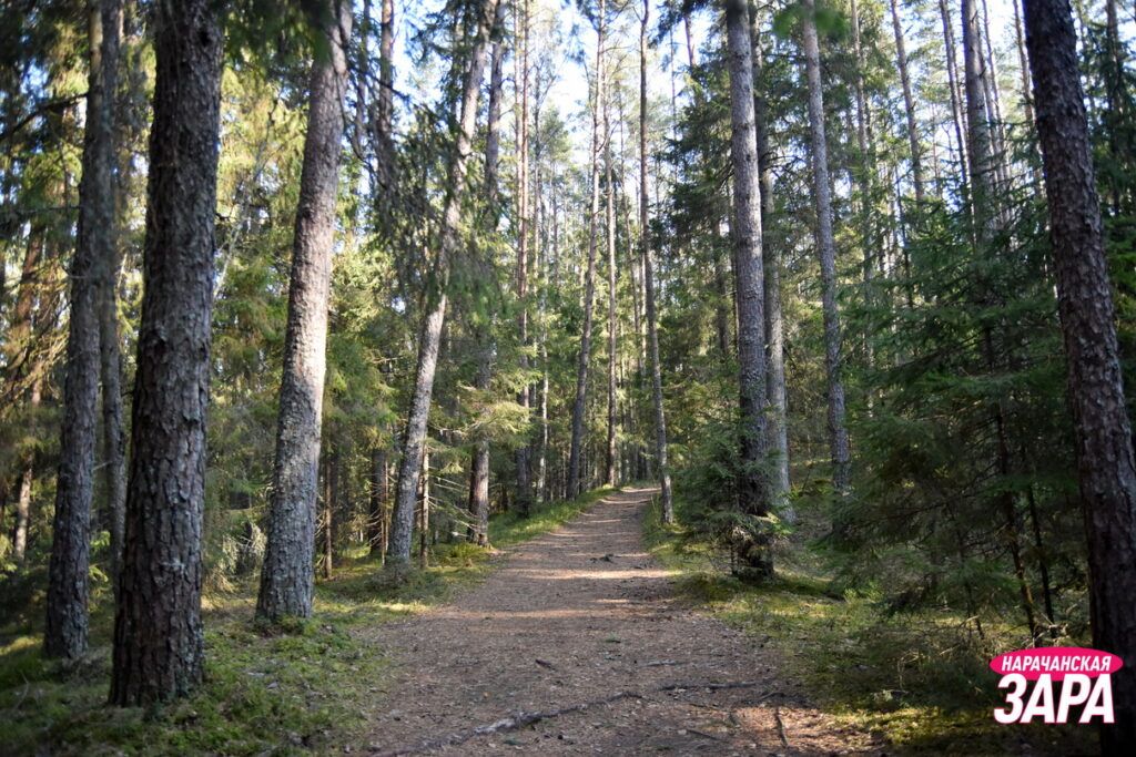 Наша справка: “Голубые озера” – уникальный природный комплекс Белорусского Поозерья: высокие холмы здесь чередуются с глубокими озерными котловинами. Маршрут экотропы включает в себя оборудованные смотровые площадки, места отдыха и деревянные скульптуры. Вдоль всей тропы установлены указатели и информационные аншлаги.