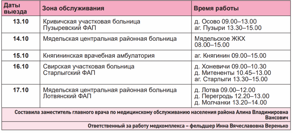 Где на этой неделе будет работать передвижной медицинский комплекс Мядельской ЦРБ