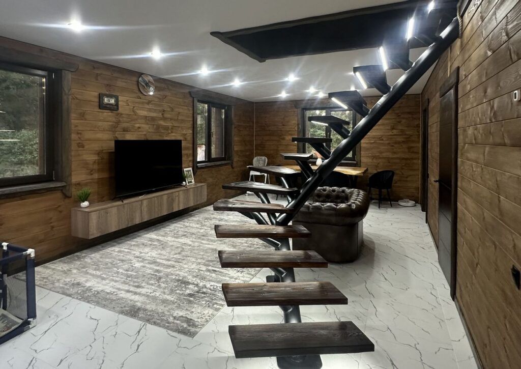 Крыша – из металла, стены – из силикатного блока. Внутренняя отделка выполнена в единой стилистике с использованием дерева, а продается дача со всей бытовой техникой и мебелью.