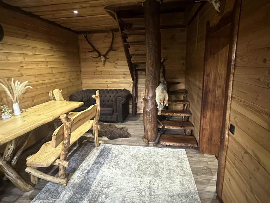 Как сообщается в объявлении, помимо жилого дома на территории участка располагается баня с мебелью ручной работы из дерева, пруд, гараж с навесами для автомобилей и зона барбекю с купелью. Для водоснабжения используется скважина, есть канализация и электрическое отопление.