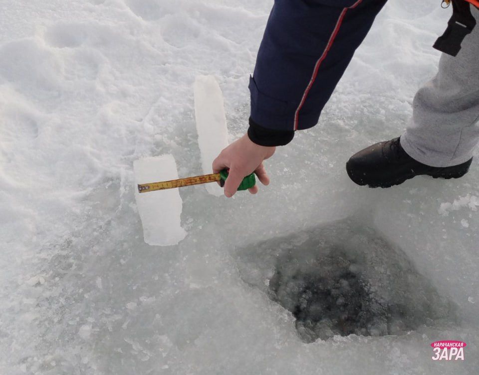 – Сейчас на озере в Мяделе под снежными наносами двойной лед, — объясняет исполняющий обязанности начальника Мядельской спасательной станции ОСВОД Артур Асаевич. — Между слоями — вода. Верхний слой – 5-6 см, нижний чуть больше – 7-9 см. Где снежное покрытие тонкое, там толщина одного слоя 12 см. Лед на сегодняшний день белый. Прочность его вдвое меньше, чем кристаллического голубого. Из этого следует, что выдержать лед может не больше, чем 350 кг на квадратный метр. Учитывая грузно одетых рыбаков с тяжелыми снастями, можно предположить, что на таком льду безопасно стоять могут всего 3 человека.