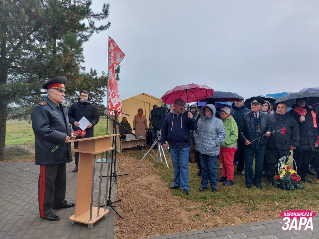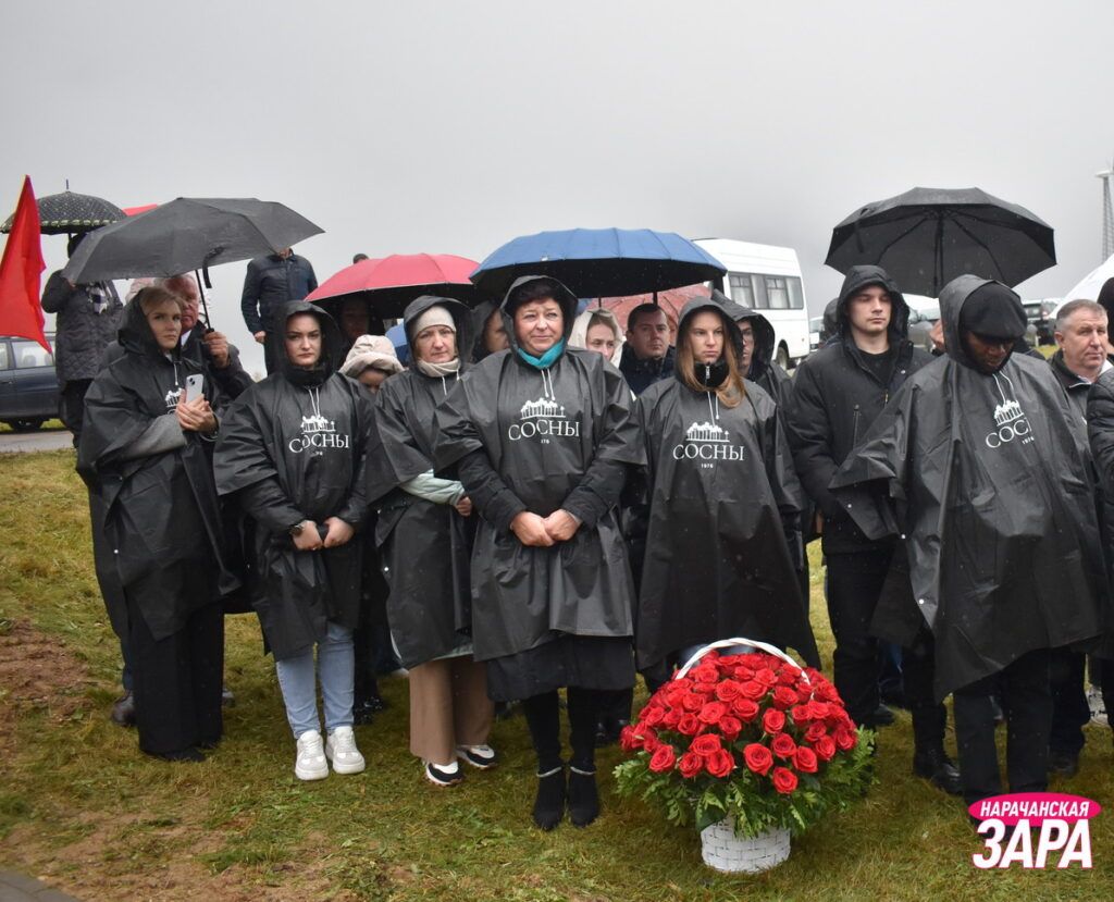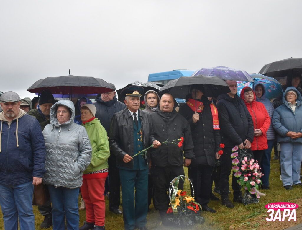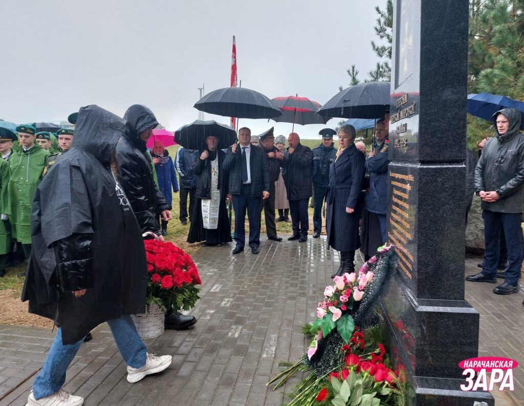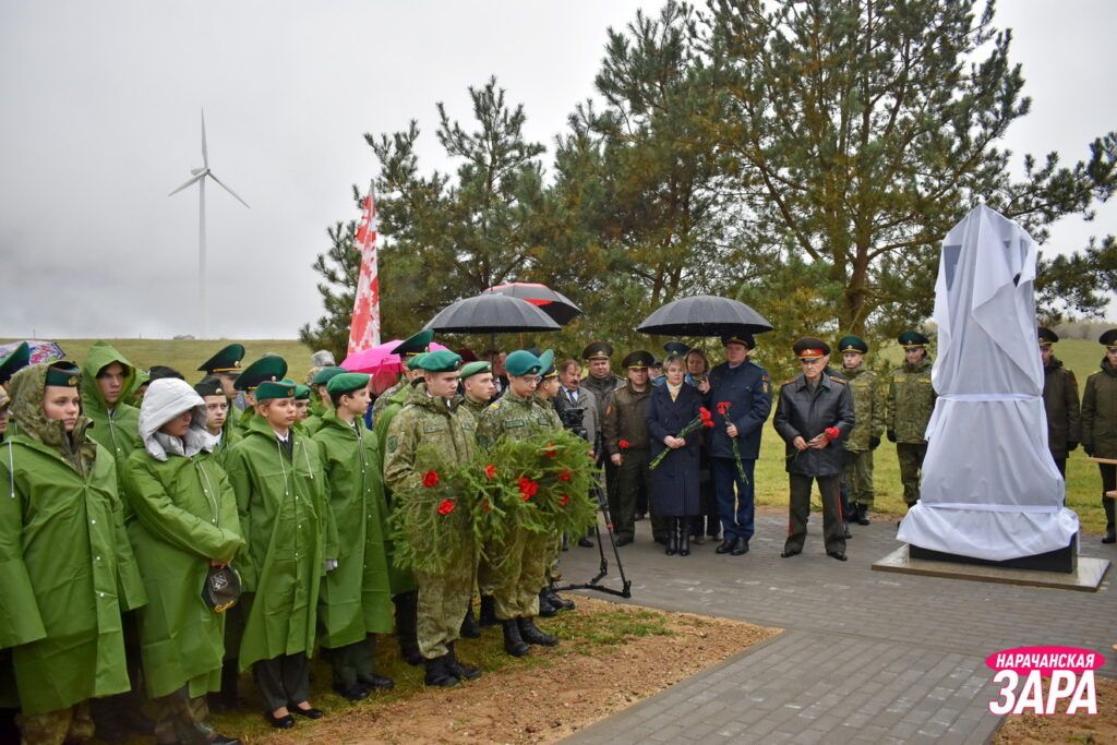 Памятный знак освятил иерей храма Преображения Господня в Занарочи Анатолий Митько. К знаку присутствующие возложили гирлянду и цветы. Память погибших воинов почтили минутой молчания.