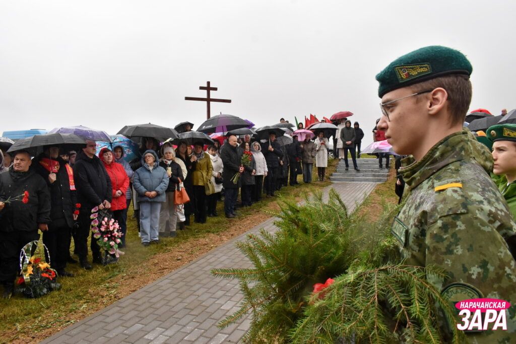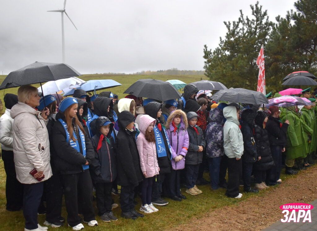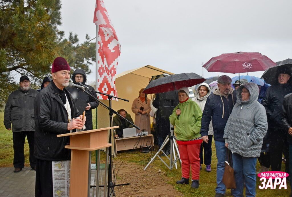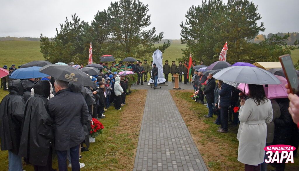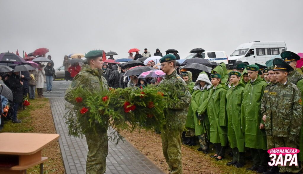 Памятный знак освятил иерей храма Преображения Господня в Занарочи Анатолий Митько. К знаку присутствующие возложили гирлянду и цветы. Память погибших воинов почтили минутой молчания.