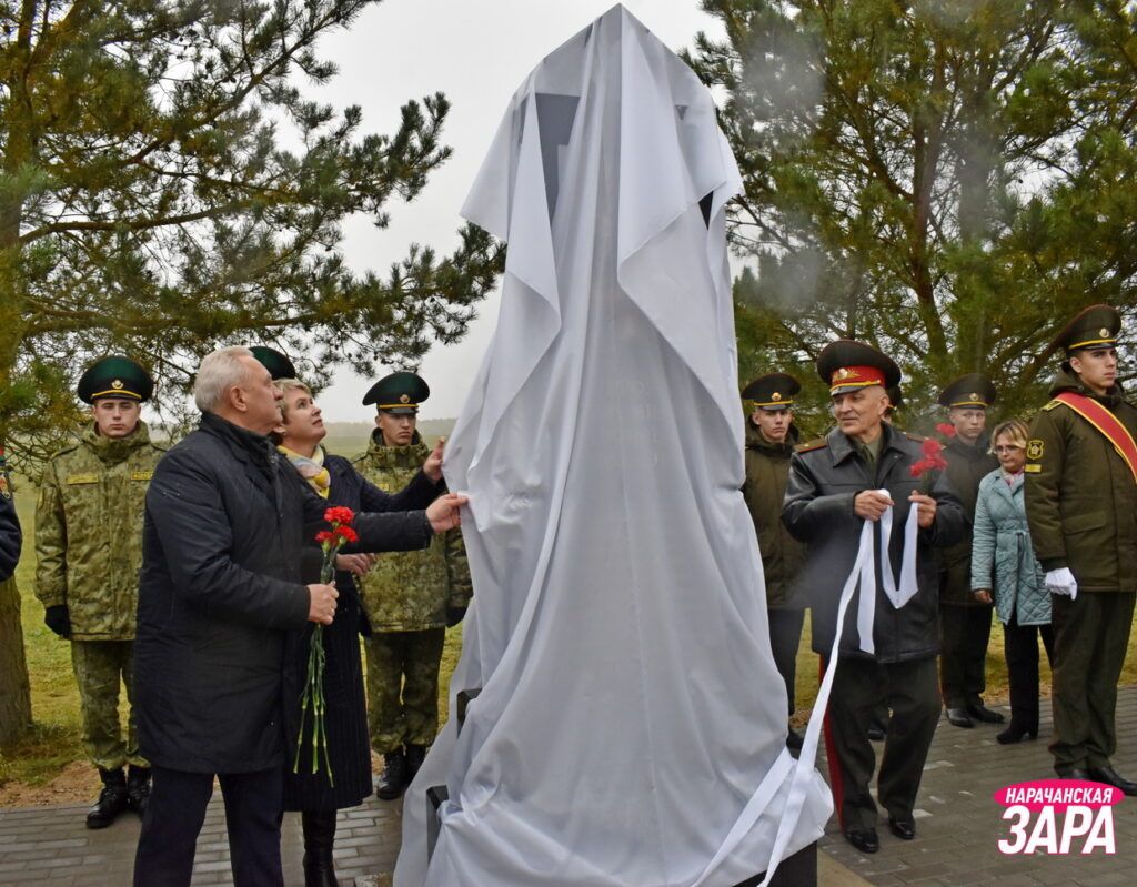 А вот и момент открытия. Почётное право открыть памятный знак было предоставлено председателю районного Совета депутатов Антонине Кривко, генерал-майору Михаилу Пузикову, заместителю генерального директора ЗАО «БелТехЭкспорт» Леониду Фармагею и директору ООО «КамГран» Константину Камаеву.