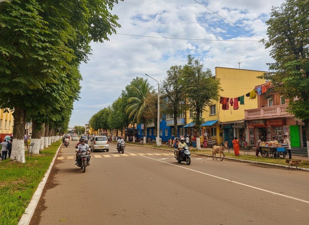 Попробуем проделать такой фокус с улицей 17 сентября в Мяделе. Предложим нейросетям преобразить её, задавая стили разных стран — от скандинавской минималистичности до яркой эстетики Индии.