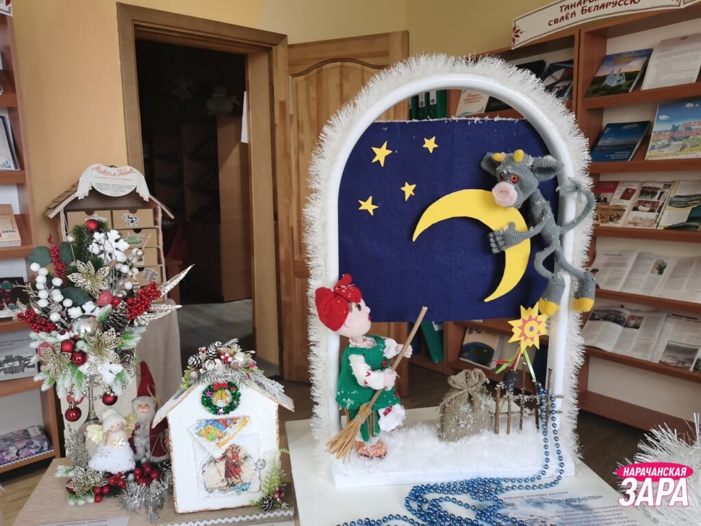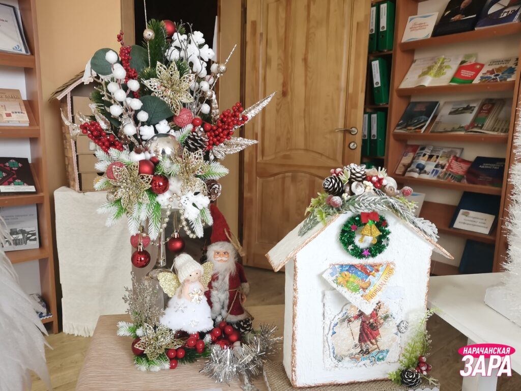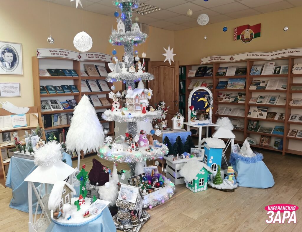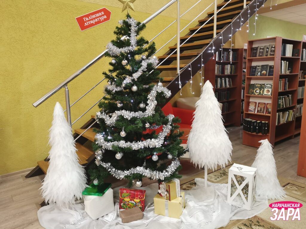 Ёлки из необычных материалов, красиво украшенное пространство, яркие экспозиции и красочные фотозоны создают новогоднюю атмосферу для посетителей центральной районной библиотеки имени Максима Танка.