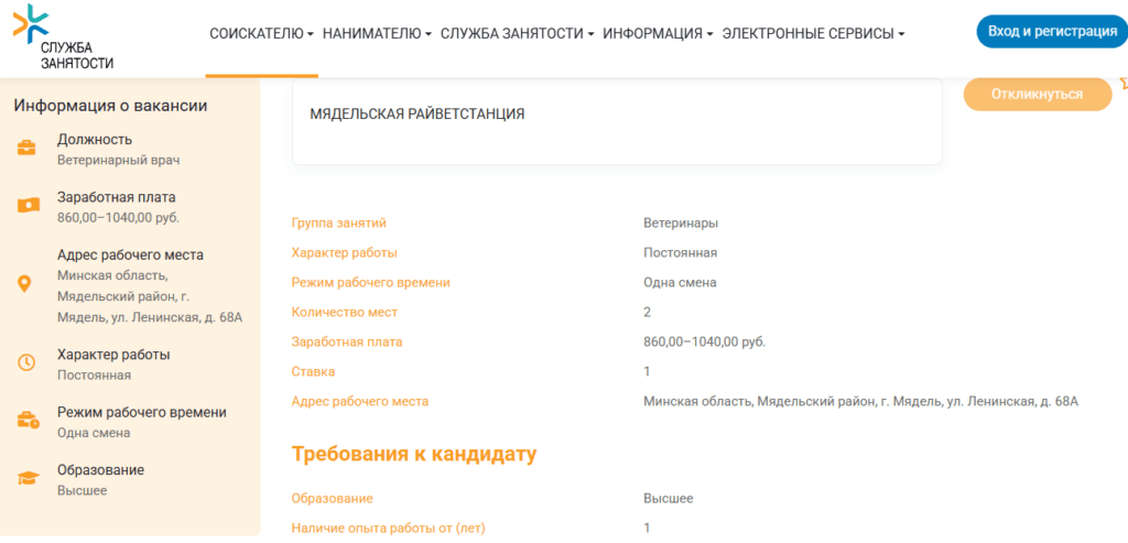 Мядельская районная ветеринарная станция приглашает к себе в команду специалиста на зарплату от 860 до 1040 рублей. На этот раз на целую ставку. Соискатель должен быть с высшим образованием и свободно владеть русским языком. Ему ведь не только с животными общаться! При этом наниматель может рассмотреть кандидата со средним специальным образованием.