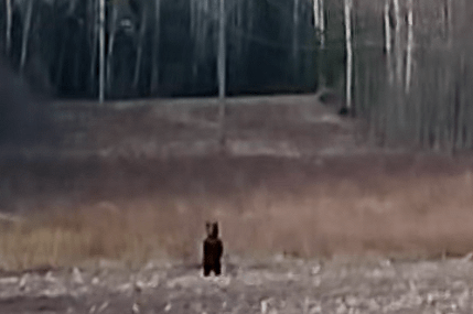 «Какая красота, глянь как стоит!» – восхищается в видео женщина, наблюдая вставшего на задние лапы медвежонка. Если верить женщине, есть там и медведица.