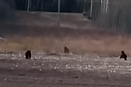 Недалеко от деревни Ковали засняли медведей. Судя по видео в Тик-Ток, это трое медвежат.