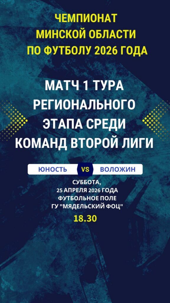 В эту субботу, 25 апреля, на футбольном поле Мядельского физкультурно-оздоровительного центра состоится матч первого тура – встретятся мядельская «Юность» и команда из Воложина.