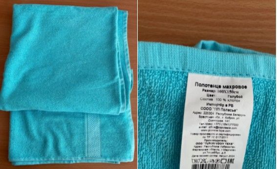 В ходе проведения проверки отделом государственного надзора за техническими регламентами и стандартами и государственного метрологического надзора (г. Молодечно) Инспекции Госстандарта по Минской области и г. Минску были выявлены полотенца махровые, не соответствующие требованиям технического регламента Таможенного союза «О безопасности продукции легкой промышленности» (ТР ТС 017/2011).