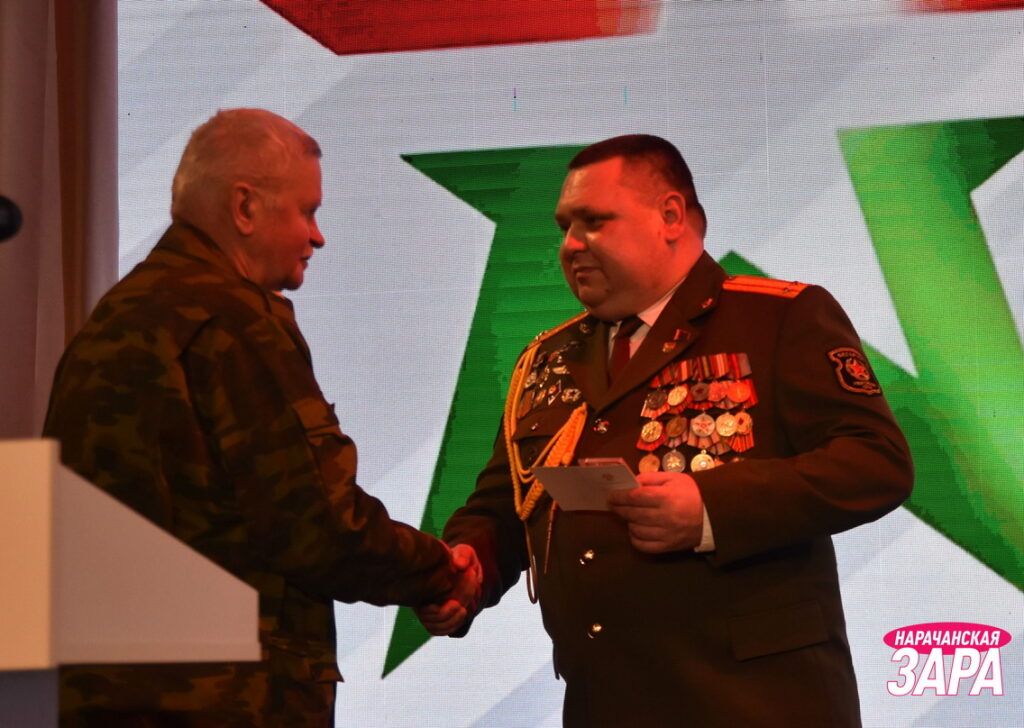 Председатель районной организации Белорусского союза офицеров Михаил Черкасов также вручил награды. Республиканский совет Белорусского союза офицеров поощрил нагрудным знаком «За активную работу» Владимира Войцеховского и Олега Сало.