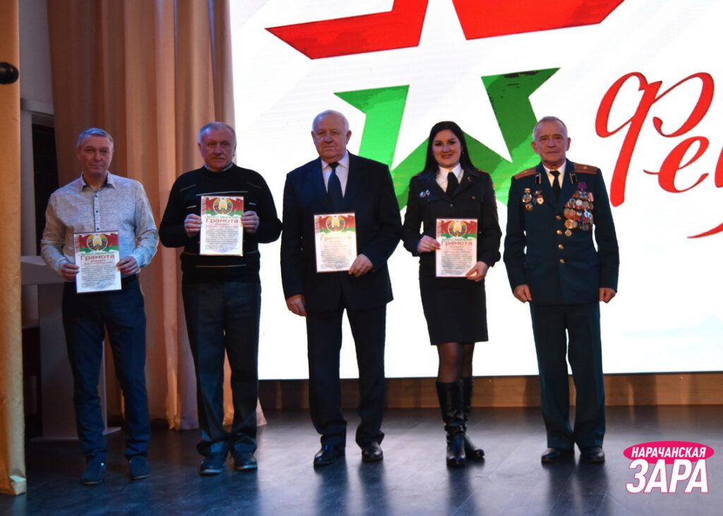 Грамоты Мядельской районной организации Белорусского союза офицеров удостоены: инспектор по делам несовершеннолетних Виктория Войтюльян, председатель районного совета ветеранов Владимир Волосевич, руководитель по военно-патриотическому воспитанию Занарочской средней школы Александр Жихар и занимающий аналогичную должность в Свирской средней школе Юрий Шукело.