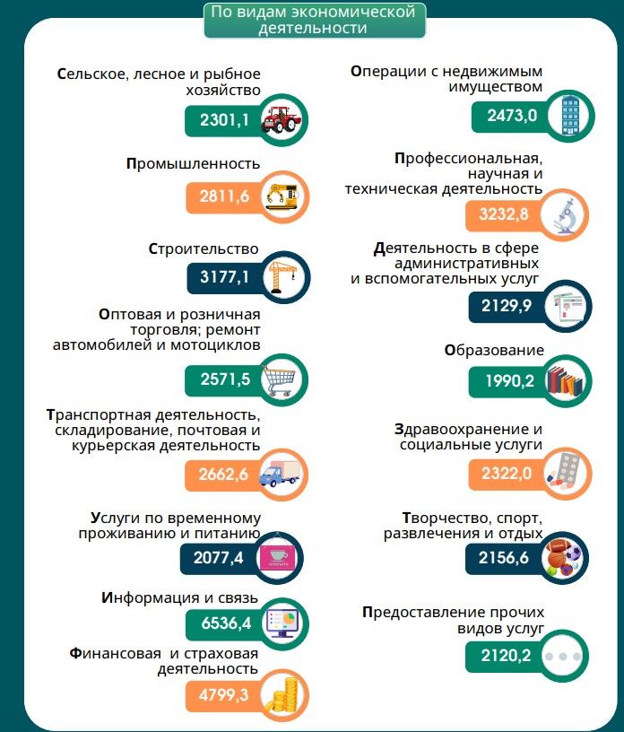 Лидером по уровню оплаты труда остается информация и связь с показателем 6536,4 рубля. На втором месте – финансы и страхование (4799,3 рубля), на третьем – профессиональная, научная и техническая деятельность (3232,8 рубля).