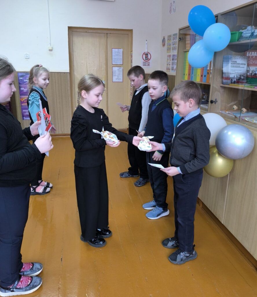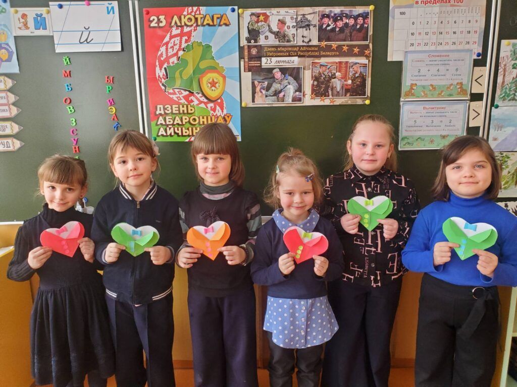 По словам Елены Рыбалт, в школе проводятся беседы, классные часы, во время которых учителя рассказывают учащимся про историю праздника, про героизм солдат и офицеров, проявленный в годы Великой Отечественной войны и мирное время.
