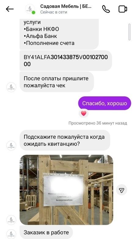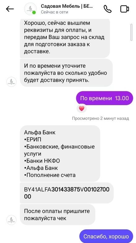 При общении продавец предлагает выбрать желаемый товар, уточняет все параметры и указывает на необходимость внести обязательную предоплату. При этом доказывает, что уже приступили к работе: даже присылает смонтированное фото с вашим заказом и контактной информацией.