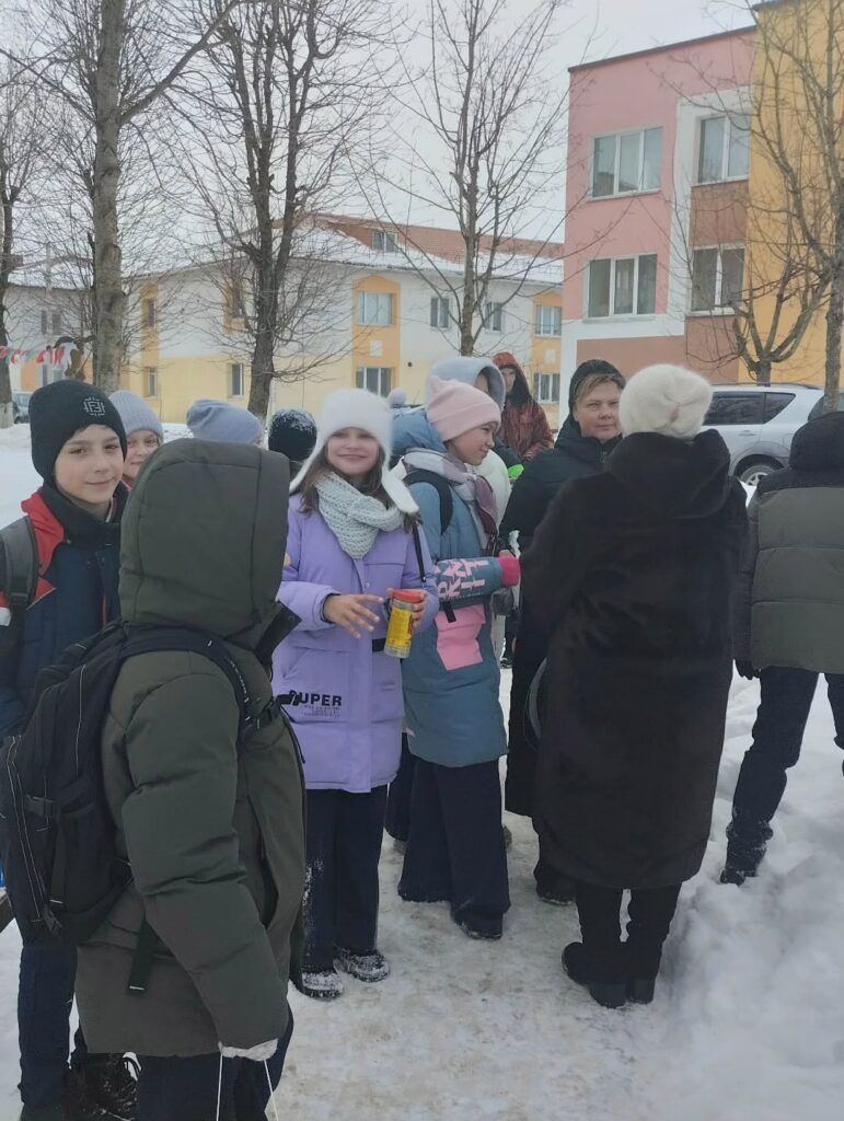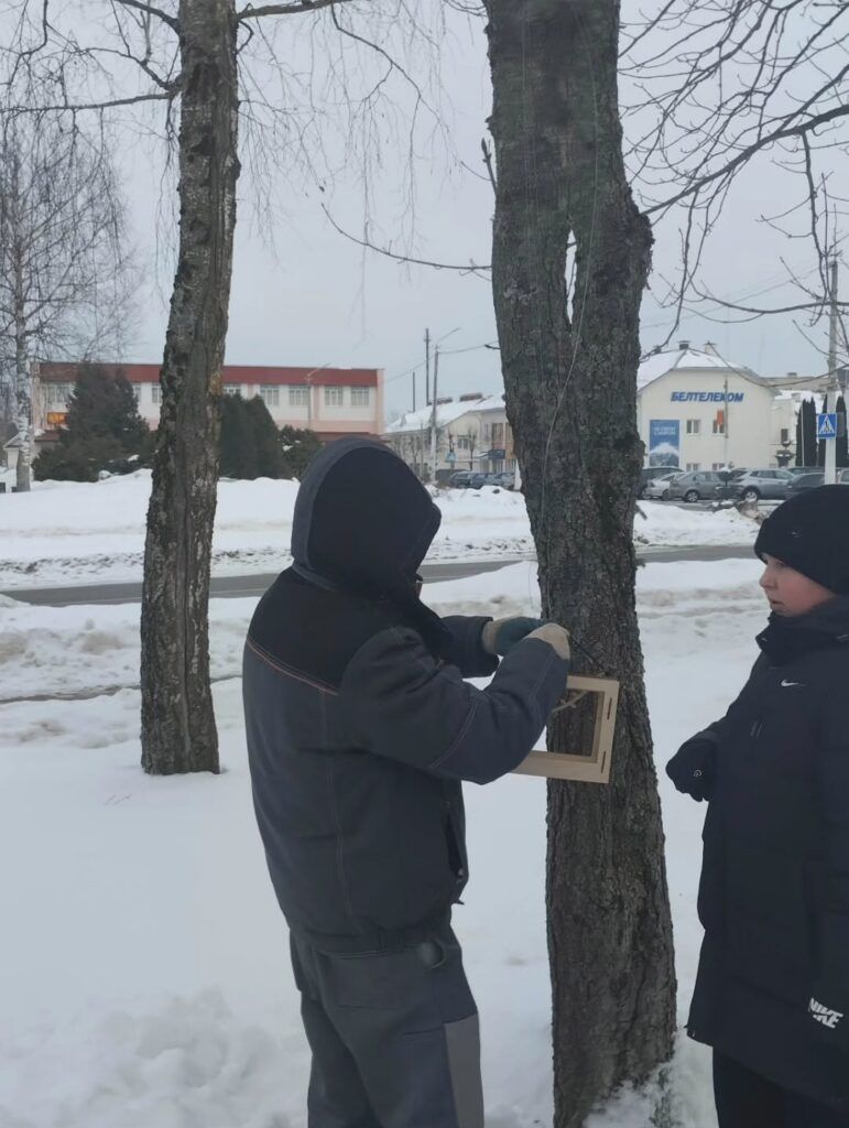 Школьники принесли кормушки для птиц в «Нескучный дворик» в Мяделе