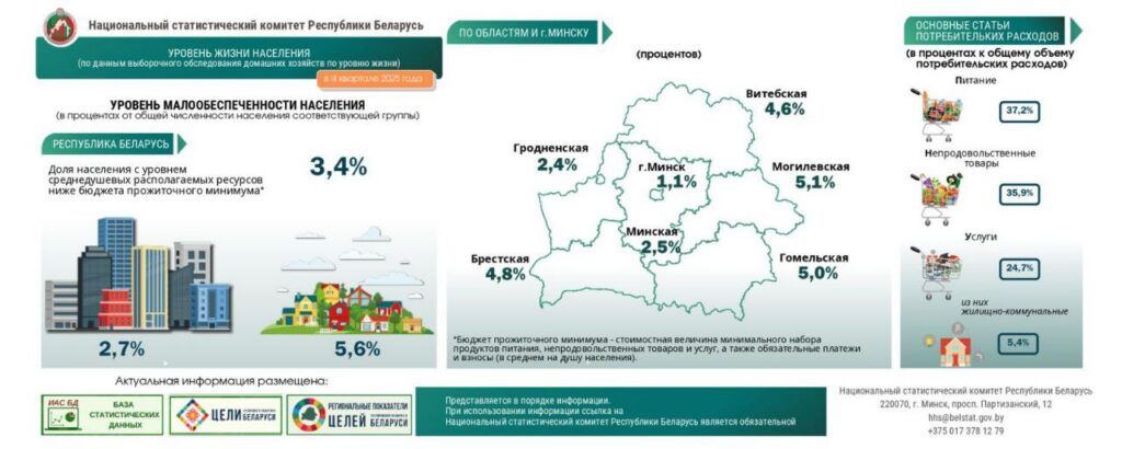 По данным Белстата, в III квартале 2025 г. располагаемые ресурсы на домашнее хозяйство достигли 2915,6 рубля в месяц. В городах и поселках городского типа показатель выше — 3032,9 рубля. В сельских населенных пунктах — 2536,6 рубля.