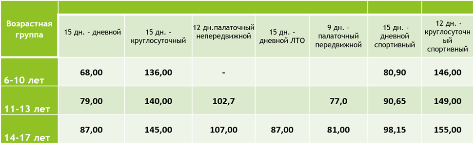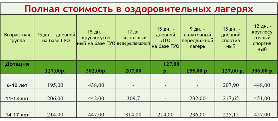 Приводим цифры по стоимости путевки (полная и с учетом размера родительской доплаты)